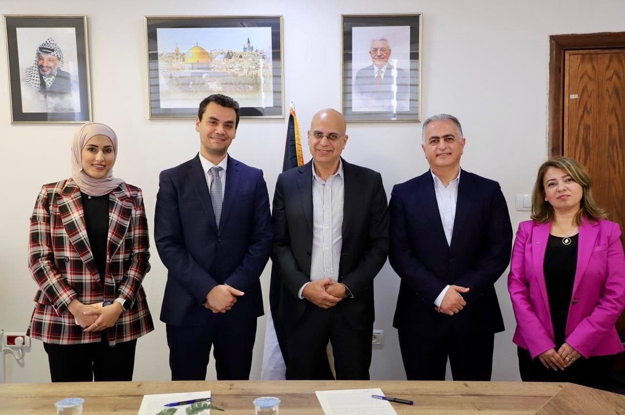 The MoU was signed by Dr. Abdul Razzaq Al-Natsheh, Minister of Communications and Digital Economy, and Mr. Ala Alaeddin, Vice Chairman of Palestine TechnoPark. The signing ceremony was attended by Engineer Jameel Daher, TechnoPark Board Member, and Ms. Walaa Samara, Director of Projects at TechnoPark, along with Ms. Rania Jabr, Director of the Innovation Unit at the Ministry.